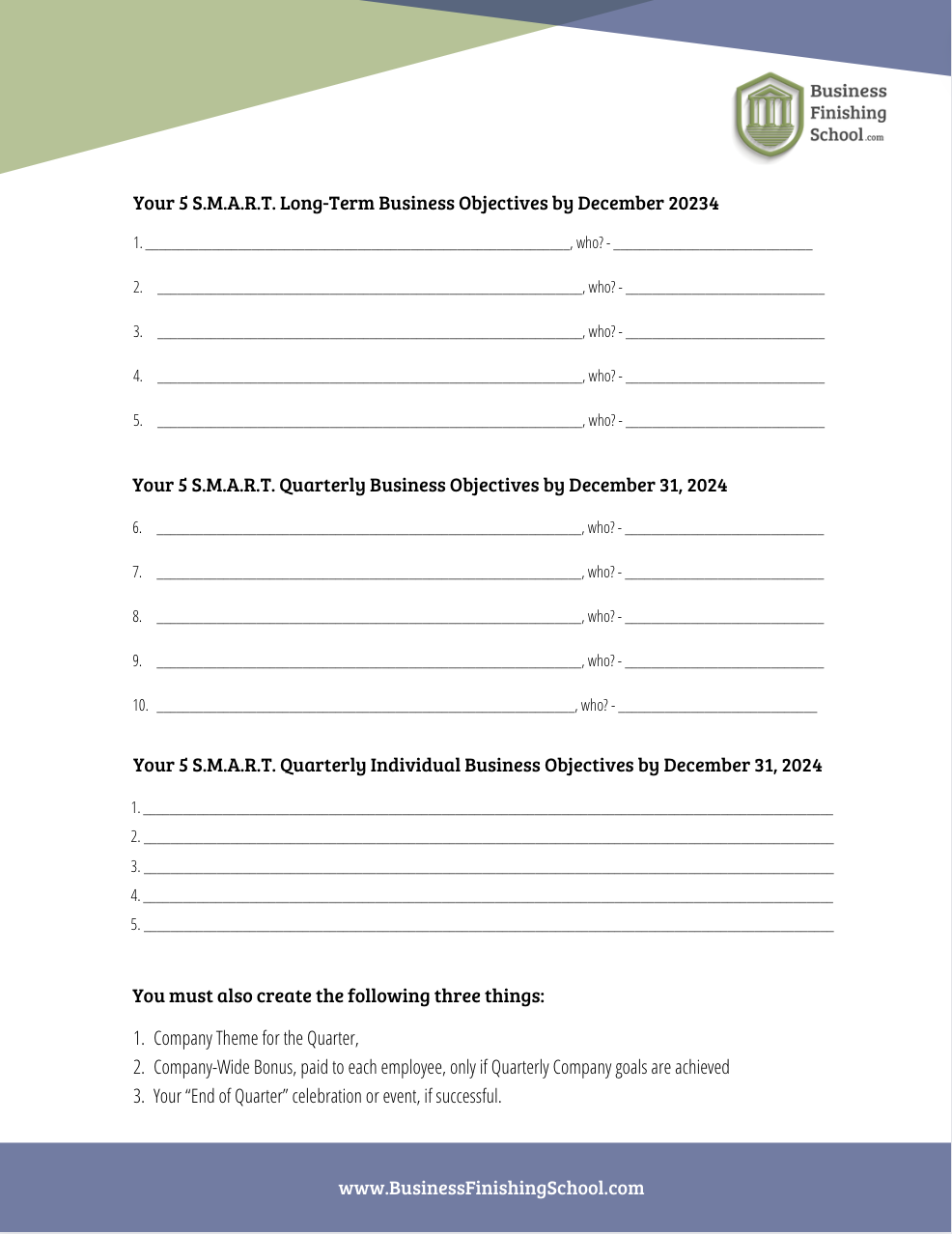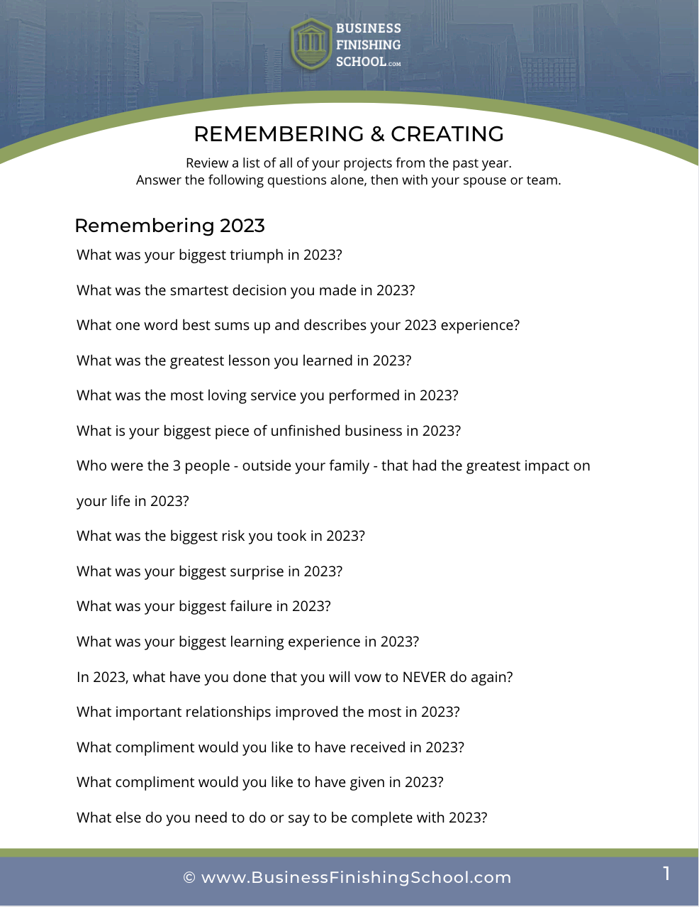 © Copyright Business Finishing School, LLC Terms of Service